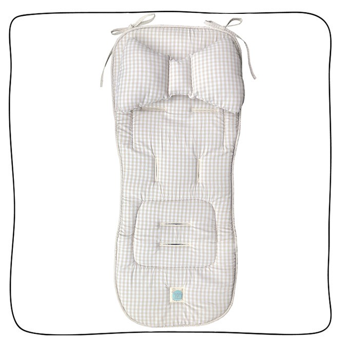 Protetor de Carrinho II Viés + Almofada - Xadrez Vichy Cru